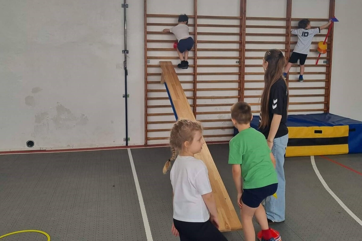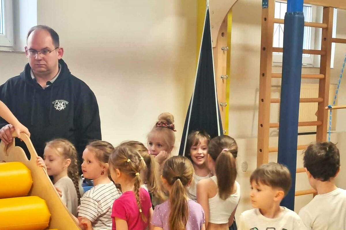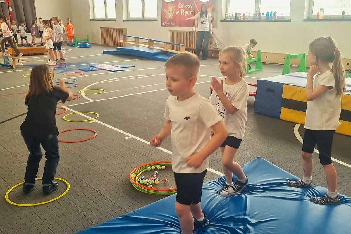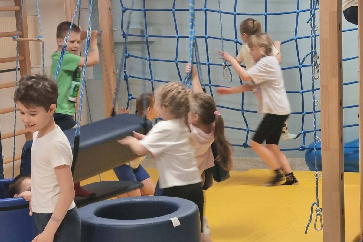Dzień rozpoczął się od przejazdu autokarem, po którym dzieci wzięły udział w zajęciach sportowych prowadzonych metodą Imopeksis przez trenera Marcina Gozdalskiego. Nie zabrakło również słodkiego poczęstunku oraz zwiedzania szkolnych przestrzeni: klas lekcyjnych, sali Integracji Sensorycznej, a także gabinetu Dyrektora.