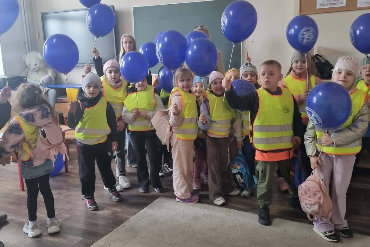Na zakończenie wizyty każdy mały gość otrzymał drobny prezent – worek, plan lekcji oraz kolorowy balon.