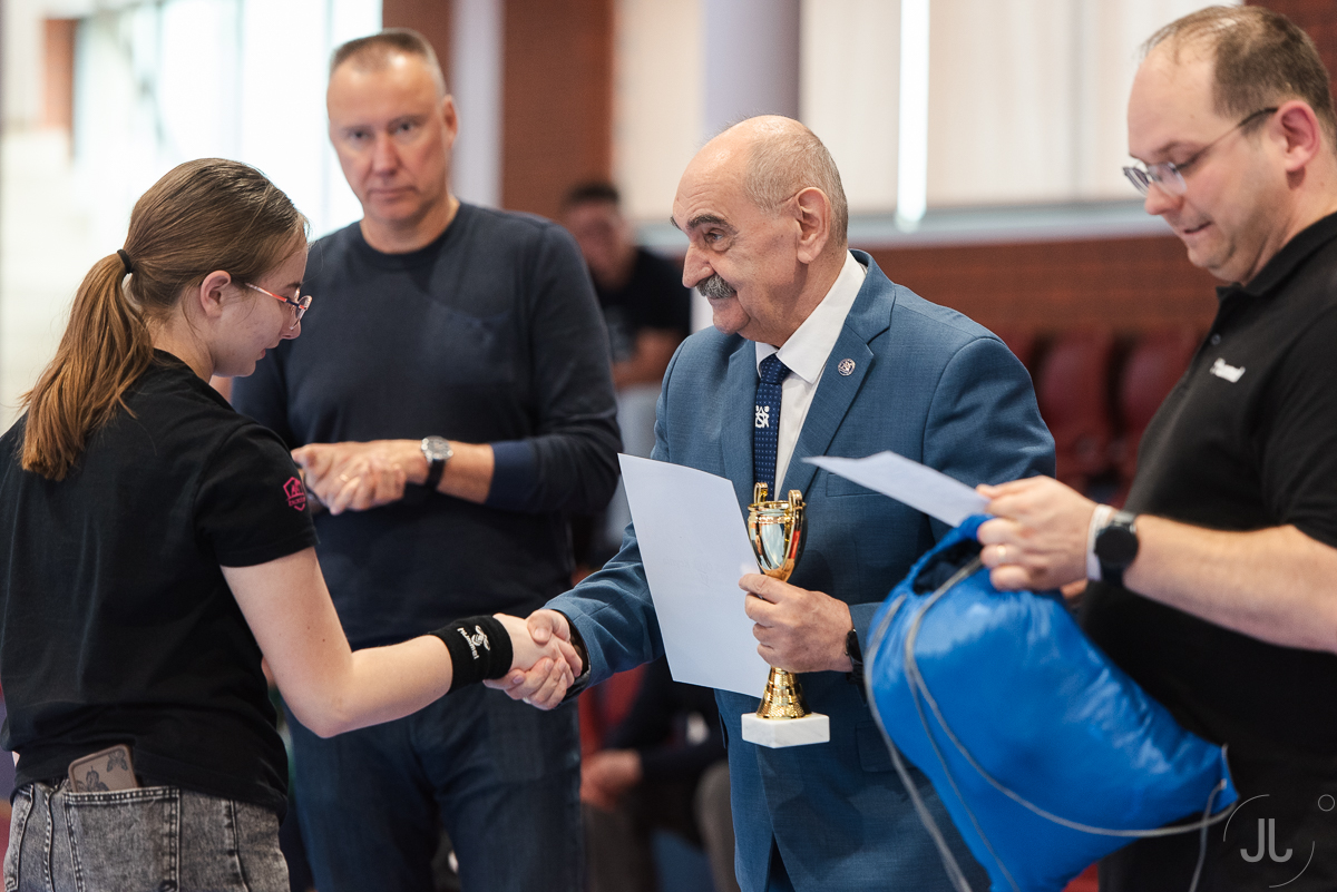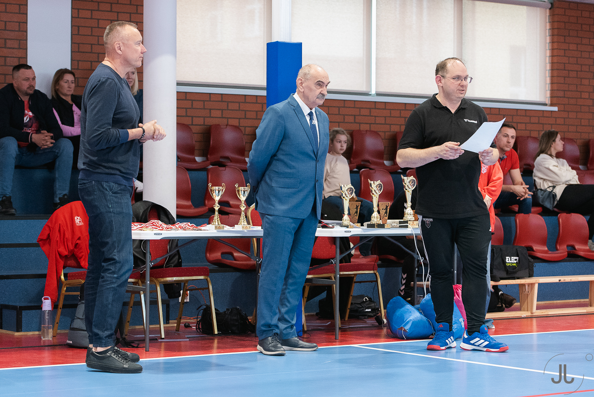 Puchary i nagrody wręczali: dyrektor Zespołu Szkół Akademickich im. Obrońców Wisły 1920 roku we Włocławku - Zbigniew Suszyński oraz nauczyciel WF w ZSA - legenda włocławskiej koszykówki - Igor Griszczuk.